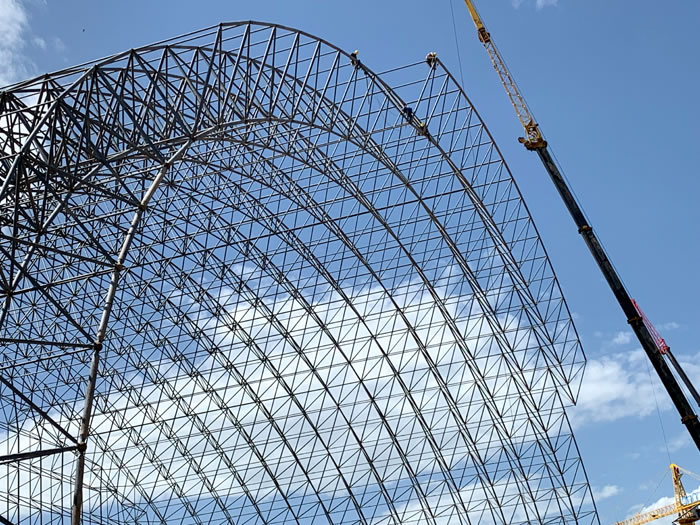 (2)网架加工前应对现场尺寸进行复测,确认无误后方可进行加工、安装;网架制作、运输、安装应遵守《空间网格结构技术规程》JGJ7-2010、《钢网架双城螺栓球节点》JG/T 10-2009、《钢网架双城螺栓球节点用高强度螺栓》 GB/T 16939-2016、《双城钢结构双城工程双城施工规范》 GB50755-2012、《双城钢结构双城工程施工质量验收标准》 GB50205-2020。