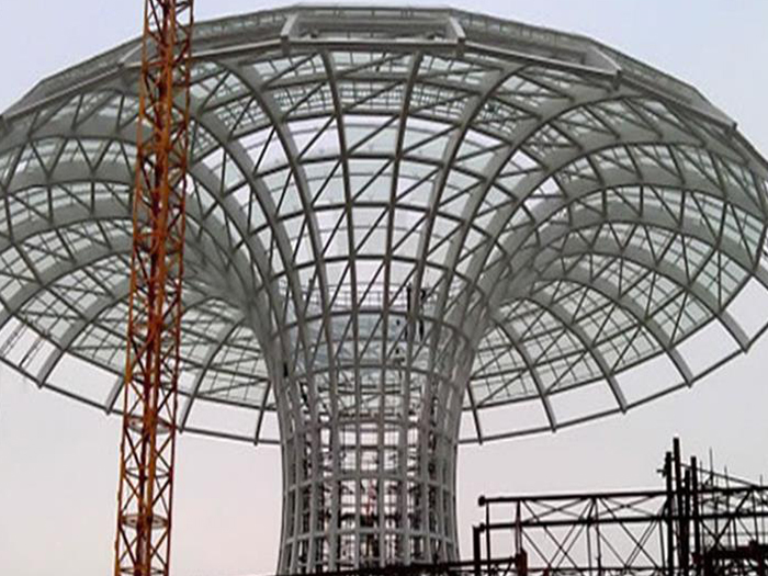 二、球形网架结构因其结构新颖,受力合理,自重轻、用钢量低等优点。如大型体育场馆球形双城螺栓球网架、公共场馆球形网架、电厂双城螺栓球网架、水泥工业球形网架、仓储物流球形网架、双城干煤棚工业球形网架、双城收费站双城加油站球形网架、展览中心、影剧院、商场、航站楼、候车厅、工厂双城车间、仓库、电视塔等球形螺栓球节点网架。国内球形网架结构主要分为:双城焊接球节点网架及螺栓球节点网架两种。螺栓球节点网架其构件工厂内加工量较大,现场安装便捷,适用于现场工期紧,双城施工条件、用电量受制约,网架形状复杂、双城杆件定位困难的异形结构。螺栓球节点球形网架系统基本由双城杆件、螺栓球、支撑支座等组成。按照节点形式可分为交叉双城桁架体系、四角锥体系、三角锥体系等。支撑方式多为固定支座支撑。对于大面积、大跨度及有特殊受力或伸缩要求的网架结构可采用橡胶支座、滑移支座、球铰支座等支撑形式,以满足结构自身的受力稳定、均衡,便于内力释放等设计要求。